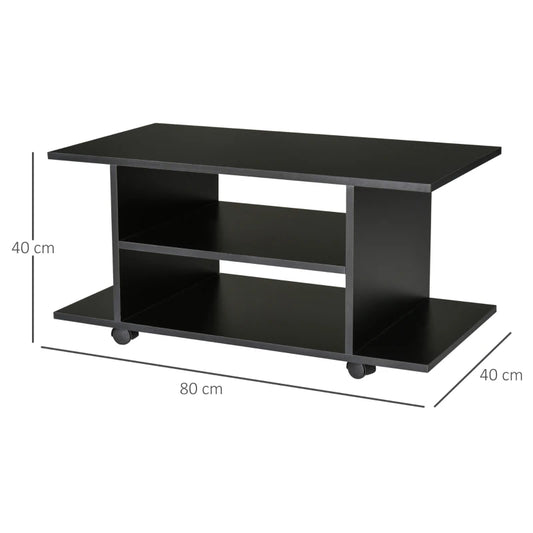HOMCOM Moveable Modern TV Cabinet Stand Storage Shelves Table Bookshelves Black