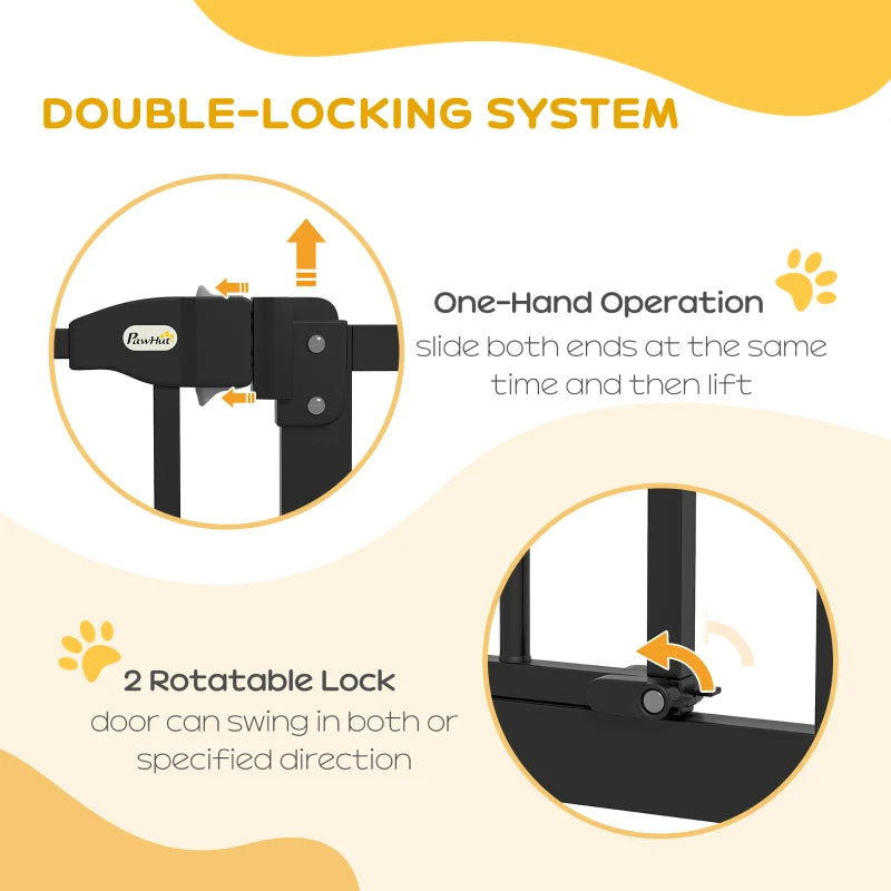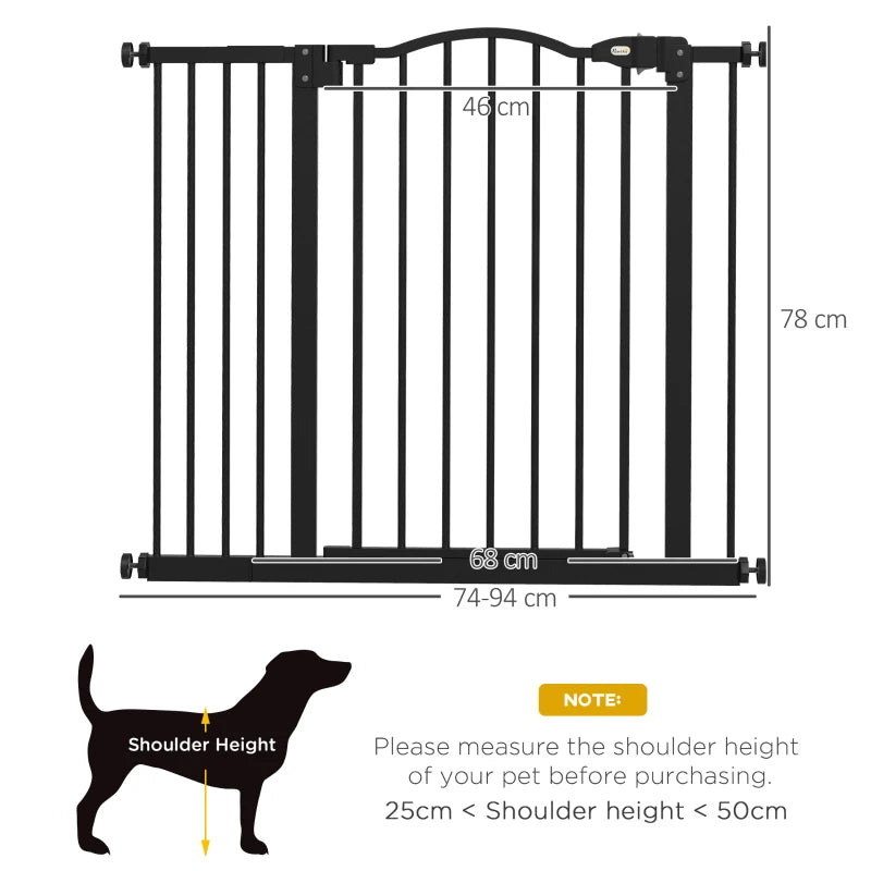 74-94 cm 2-Sided Adjustable,AutoClose Metal Pet Safety Gate Barrier PawHut Black