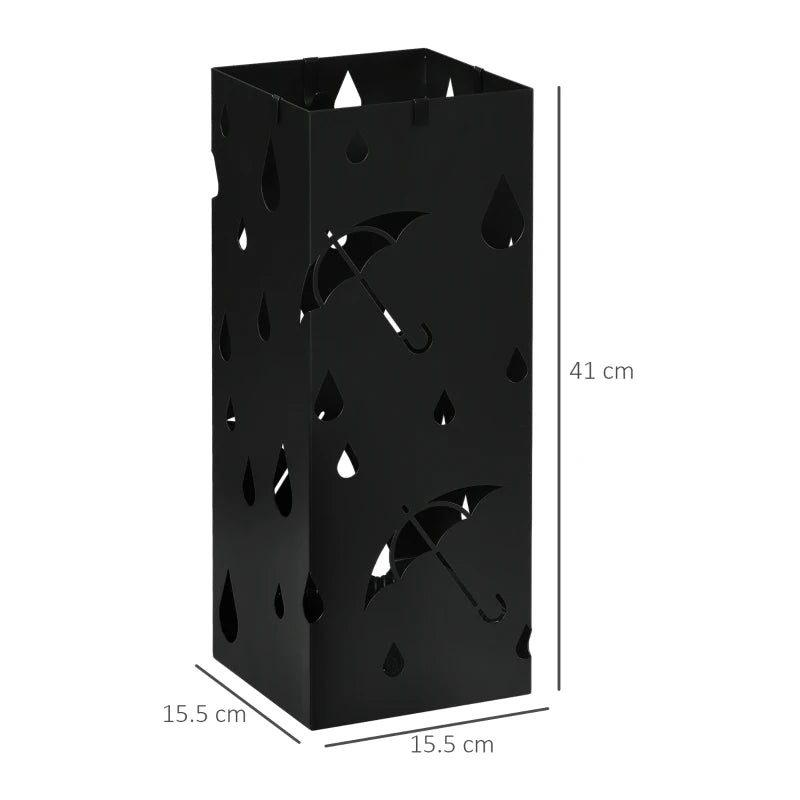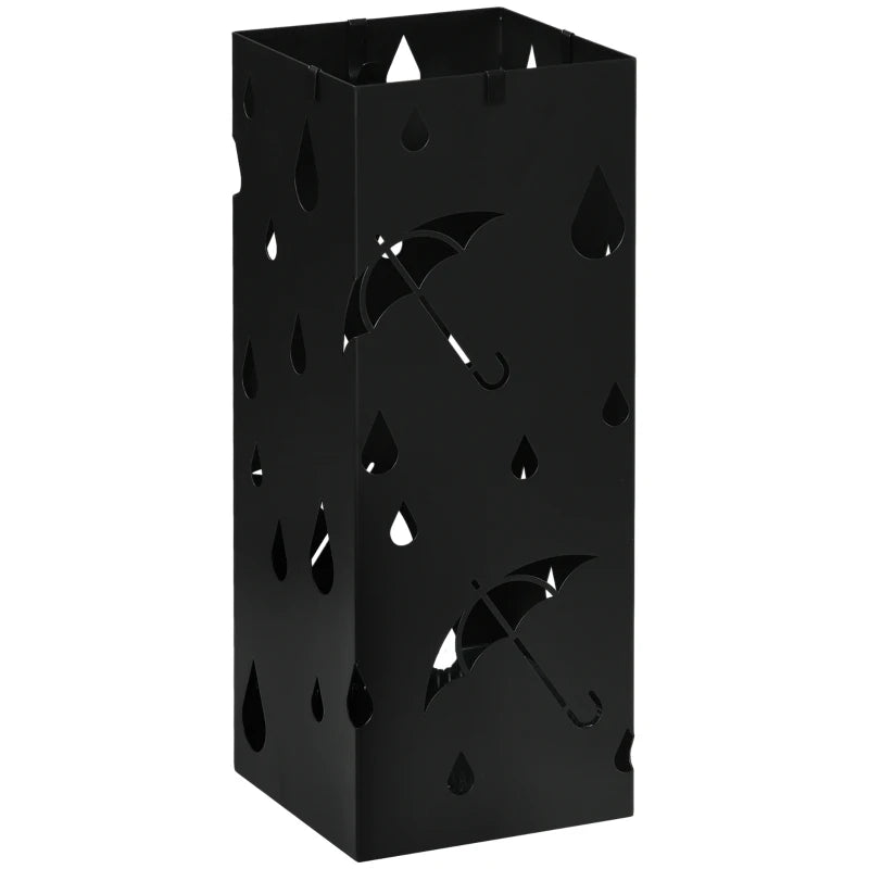 HOMCOM Heavy Duty Square Umbrella Basket w/ 4 Hooks & Drip Tray | Black, Metal
