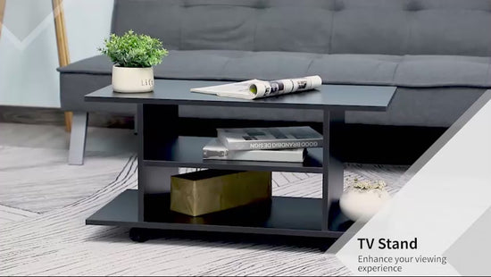 This stylish TV unit is an ideal option for living room furniture. Featuring a stand top and a two-layer open shelf, it provides more space for your other stuff. Four 360° castor wheels under the entertainment unit enable you to move it with ease to wherever you'd like. They also complete with brakes, so the table can be kept static in a certain place.