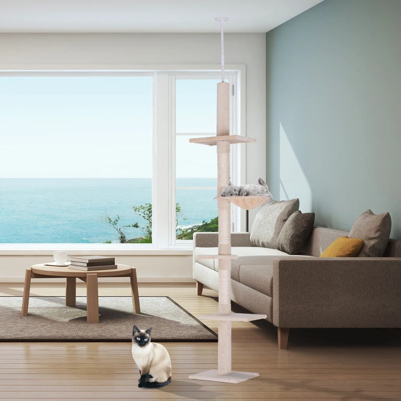 Pawhut 5 - Tier Floor to Ceiling Cat Tree Scratching Post Tower Activity Center