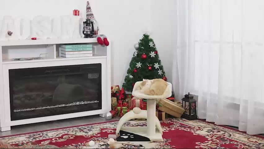 Treat your cat to the ultimate pet haven; a comfortable PawHut cat tree tower, filled with comfort and entertainment. They have a hanging toy ball to swipe at, keeping them busy when feeling playful, whilst the scratching posts and curved scratching board keep their claws sharp and healthy. When it's time to nap, they'll curl up on the top perch, which is covered in soft plush for extra snugness. Watch your pets purr with satisfaction - a piece to make every day extra special.
